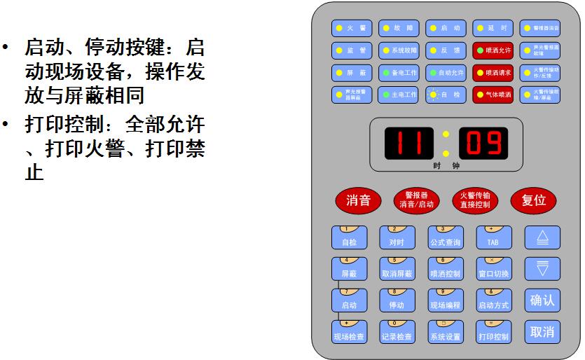 2.控制器配置64點手動消防啟動盤1塊,完成對總線制外控設備的手動控制;